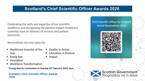 These awards are a fantastic opportunity to recognise and celebrate the outstanding skills, innovation, and impact of healthcare scientists across Scotland. They highlight the vital role our scientific workforce plays in delivering high-quality services and improving outcomes for patients and communities.