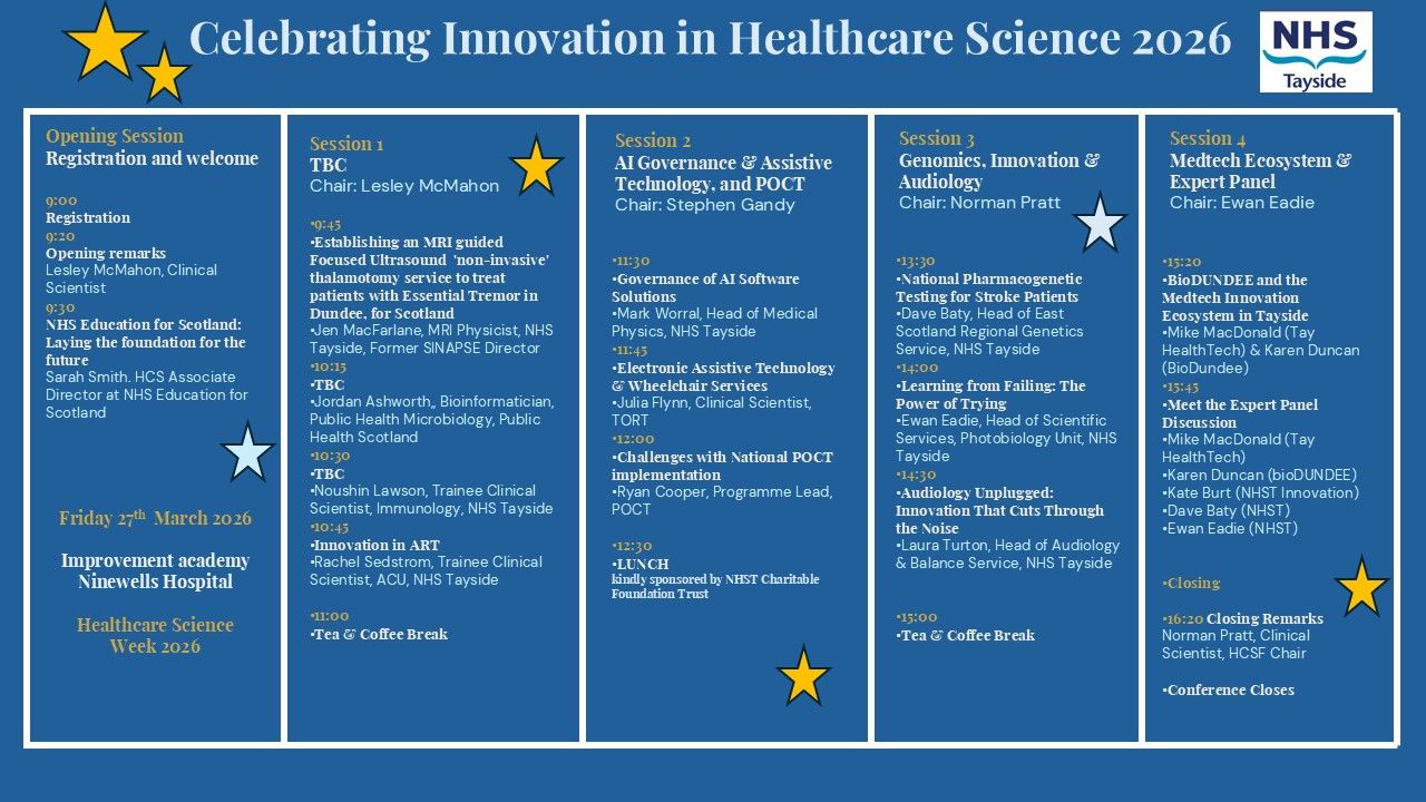 The day will consist of short presentations from various HCS disciplines with the aim of showcasing innovation and the impact of this within the patient journey. This will be an interactive and informative day for all HCS fellows in NHS Tayside and other associated medical professionals. Event registration available at the LINK.